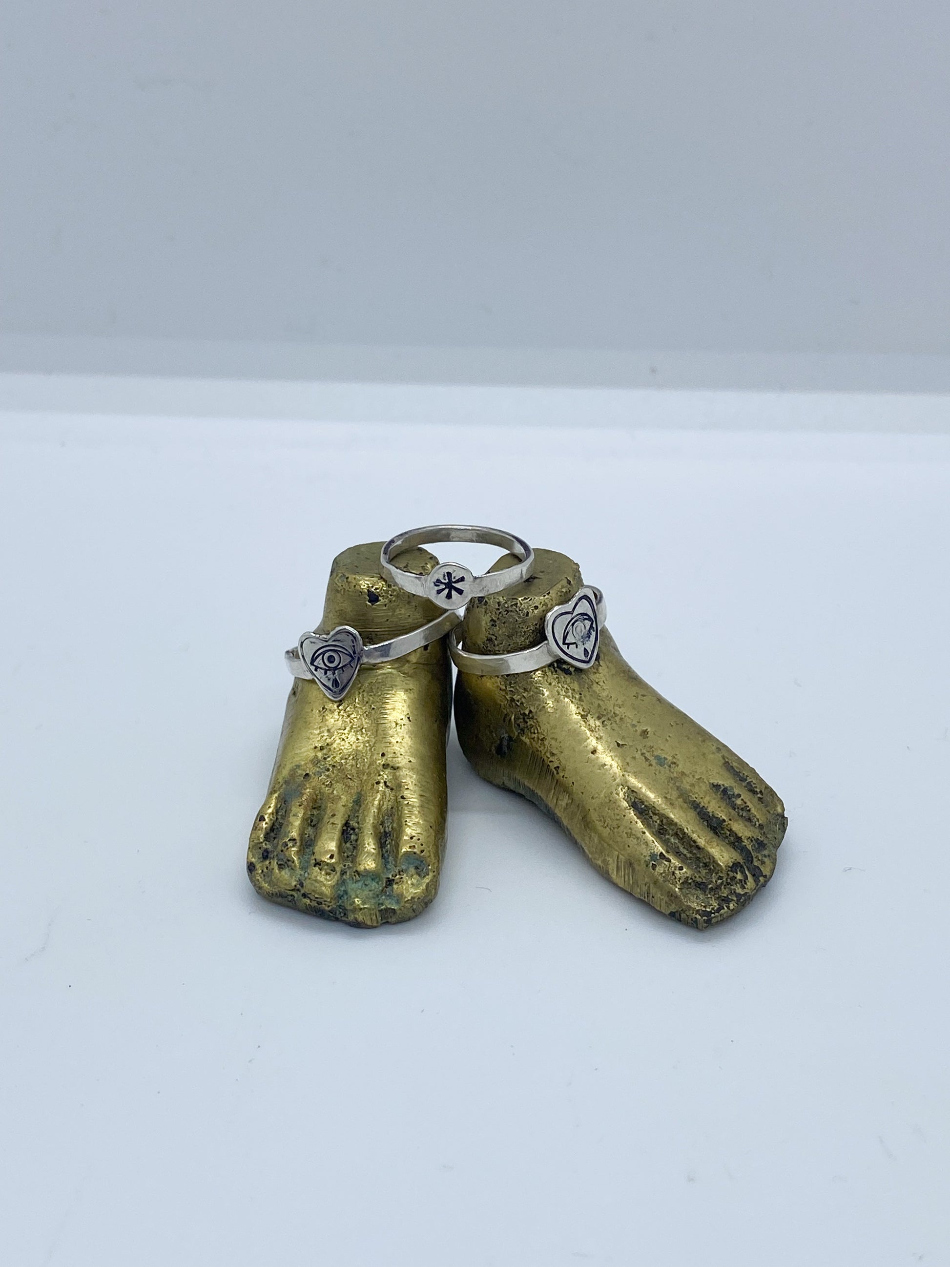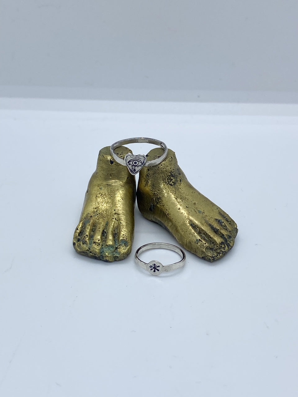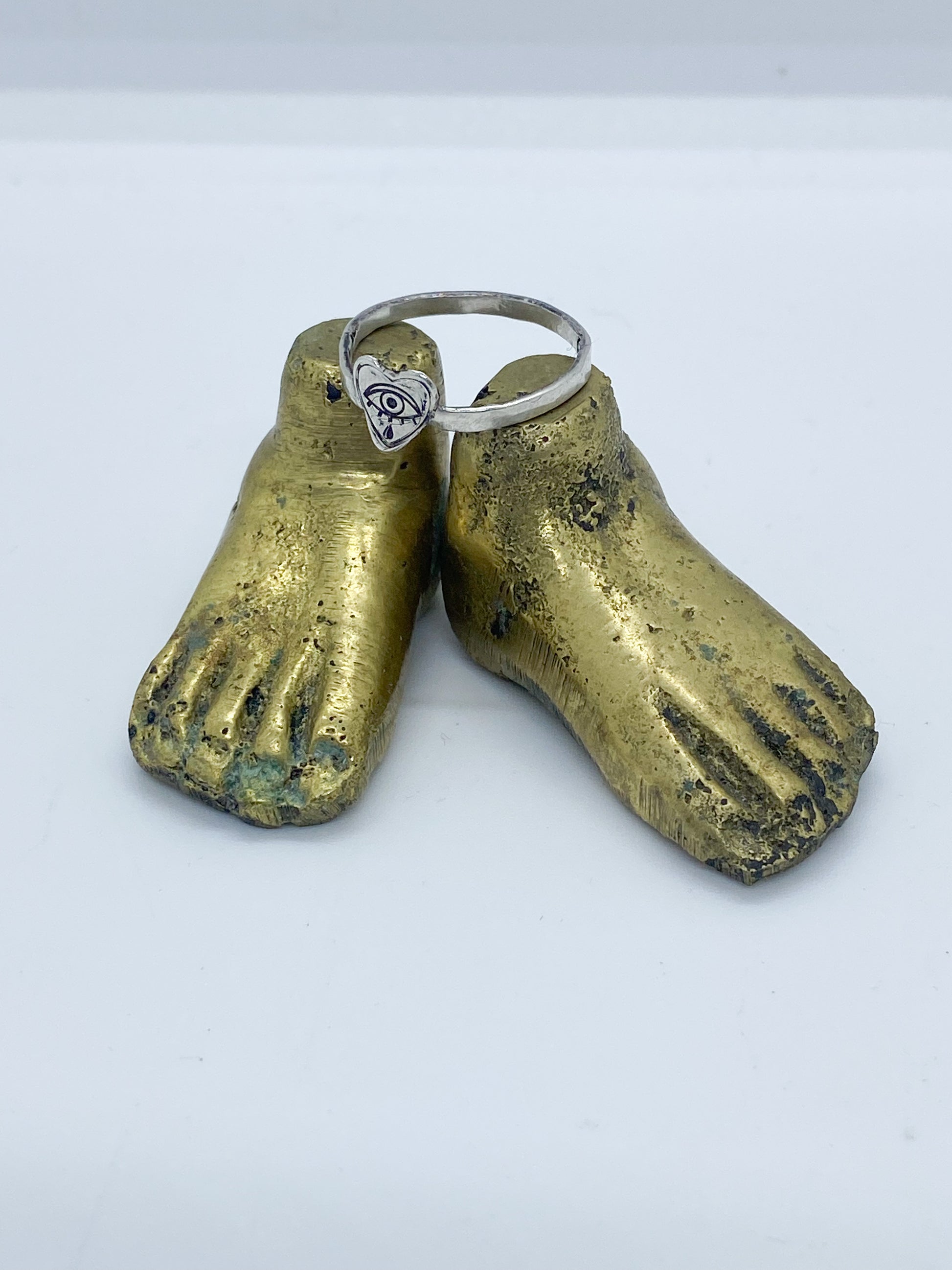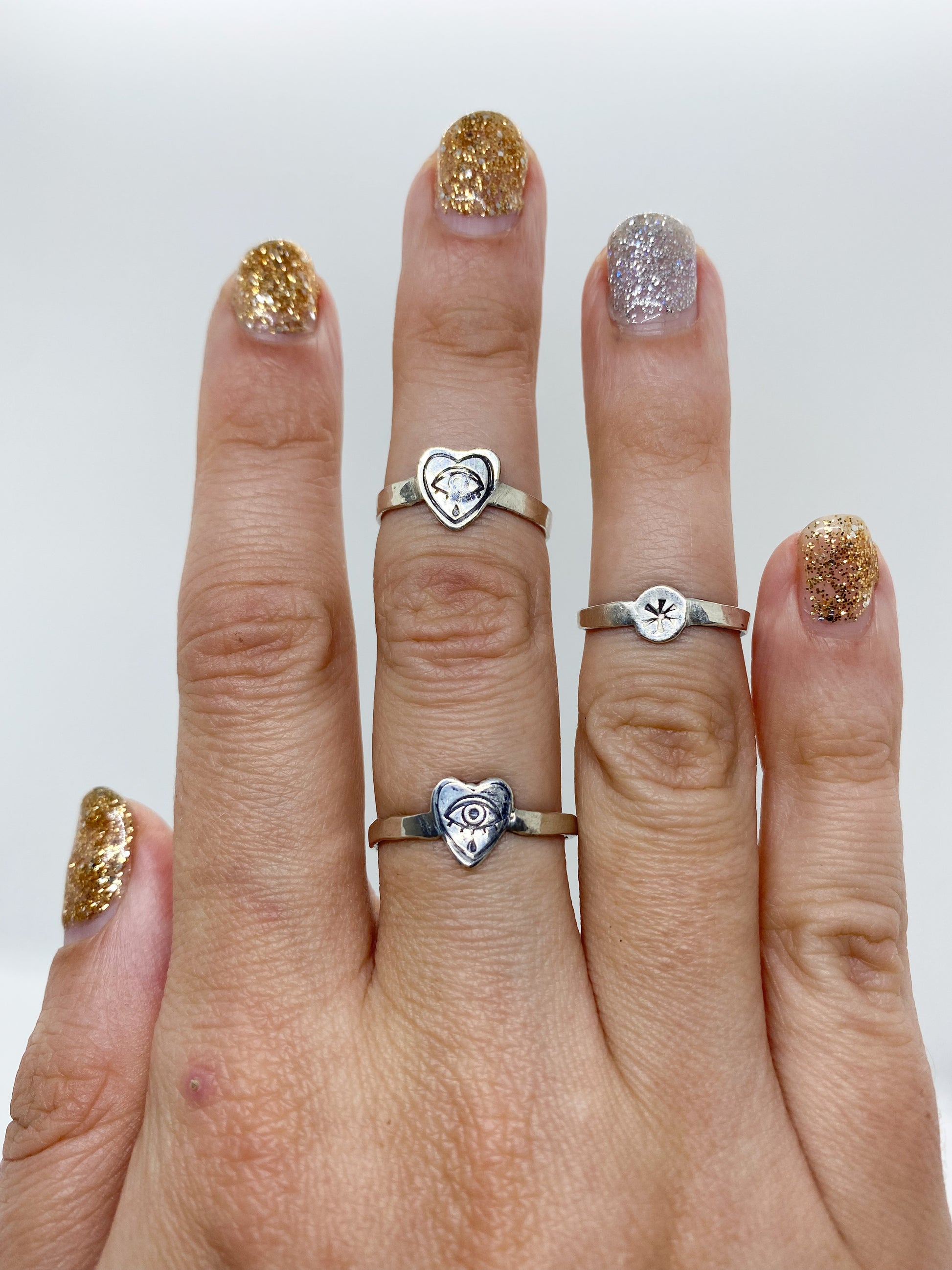 Handmade, sterling silver, crying eye heart, hammered ring. This piece is simple, delicate, and perfect for everyday wear. This piece is 925 stamped, signifying I made it out of sterling silver, and has my HJ signature stamp inside the band.